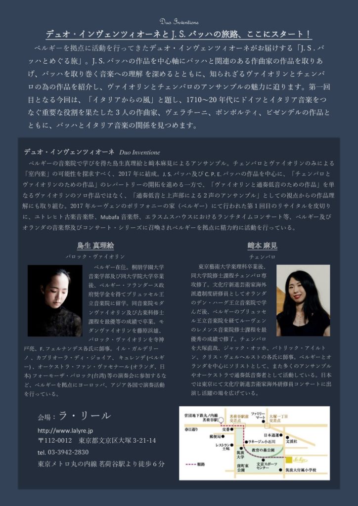 Duo Inventione(デュオ・インヴェンツィオーネ):鳥生真理絵(ヴァイオリン)、﨑本麻見(チェンバロ)